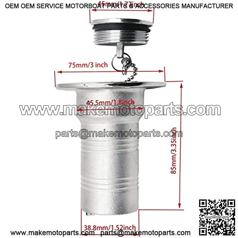 The opening method of the special key is safer and more convenientOur deck filler is suitable for 1.5 inch diameter hose, and cap contains a high grade O-ring seal. Fits for Boats, yachts, caravans, RV, trucks, tractors and trailer fuel tanks etc.