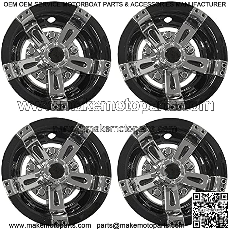 10 Inch Golf Cart Wheel Covers | Black and Chrome Hubcaps