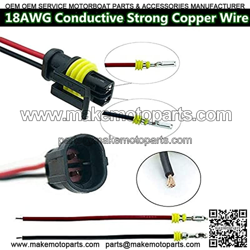 2-pin waterproof connector with 18 AWG 10 cm (3.94 in) wire.