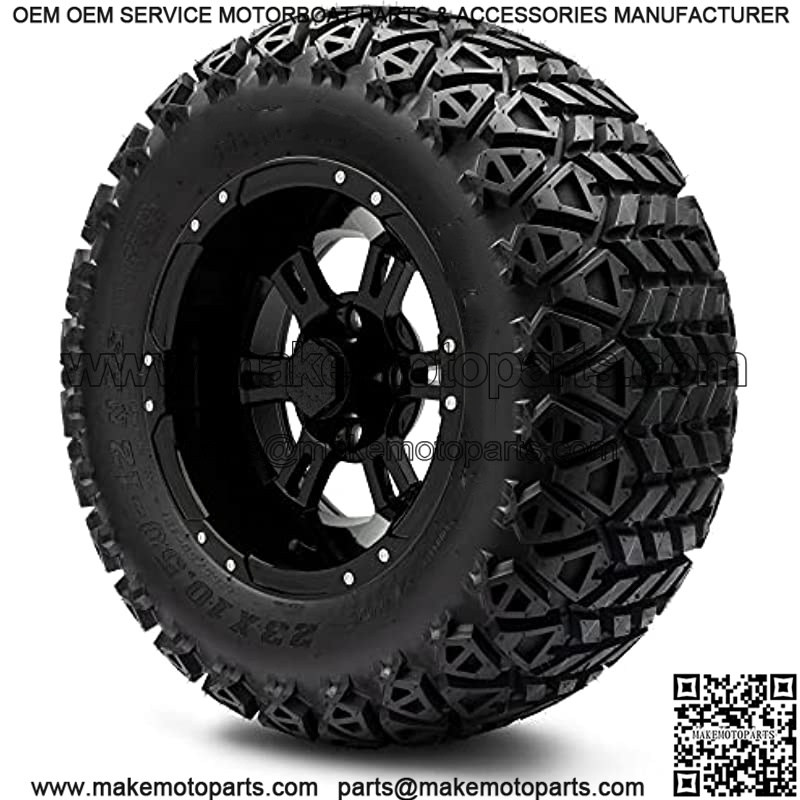 MODZ Ambush Glossy Black Golf Cart 12″ Wheels and Tires – All-Terrain ComboNOTE: This wheel and tire combo REQUIRES a 6″ Lifted golf cartGet the last style in MODZ wheels and make your golf cart stand out from the rest. The combo is for 4 mounted tires and wheels. All-Terrain Tires from Arisun.This Combo inclues:MODZ Ambush Glossy Black Wheels 12×7 with 4×4 bolt patternSet of 4 mounted golf cart tires and wheel assemblies16 Black Lug Nuts4 Center CapsWheel has ET -25 offsetTire option:X-Trail – 23×10.50-12