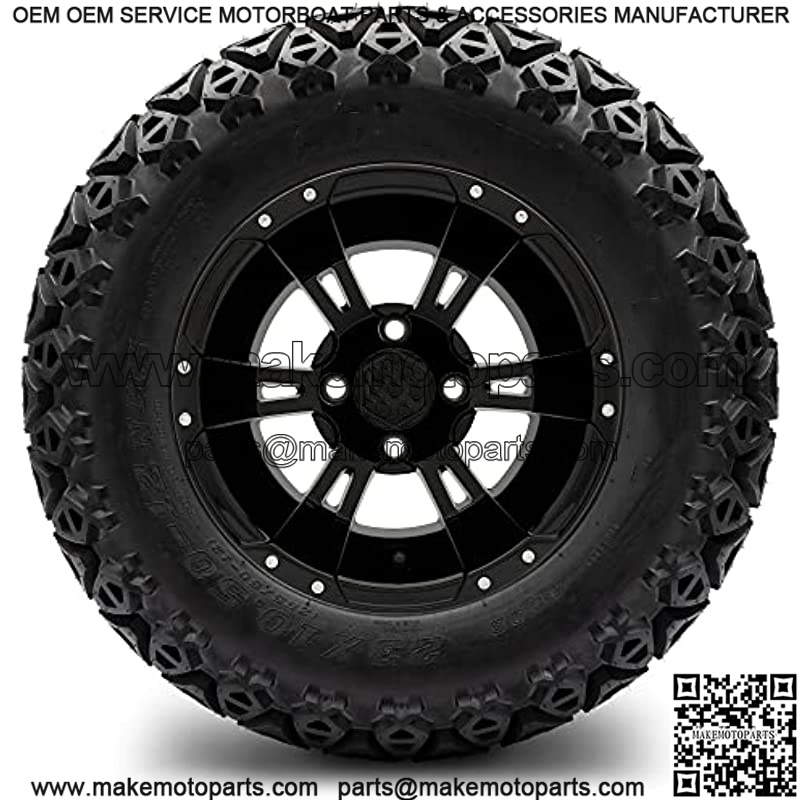 12″ Ambush Glossy Black Golf Cart Wheels and All Terrain Tires Combo Set of 4