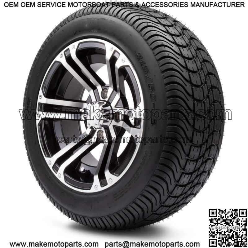 12″ Enforcer Machined and Black Golf Cart Wheels and Tires (215-50-12) Set of 4