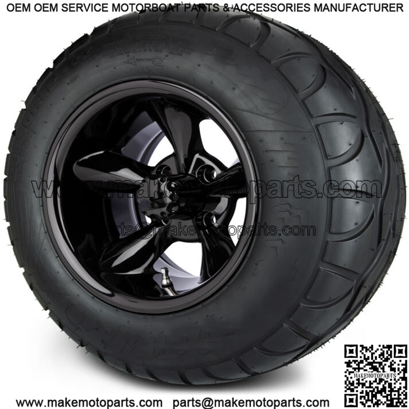 12″ Godfather Glossy Black Golf Cart Wheels and Radial Tires (23×10-12)