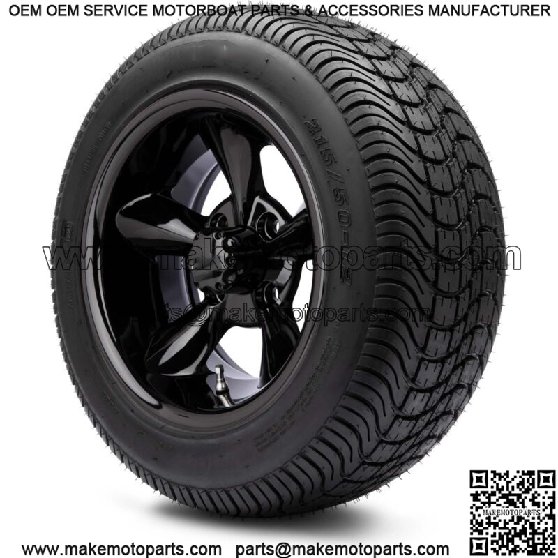 12″ Godfather Glossy Black Golf Cart Wheels and Tires (215-50-12) Set of 4