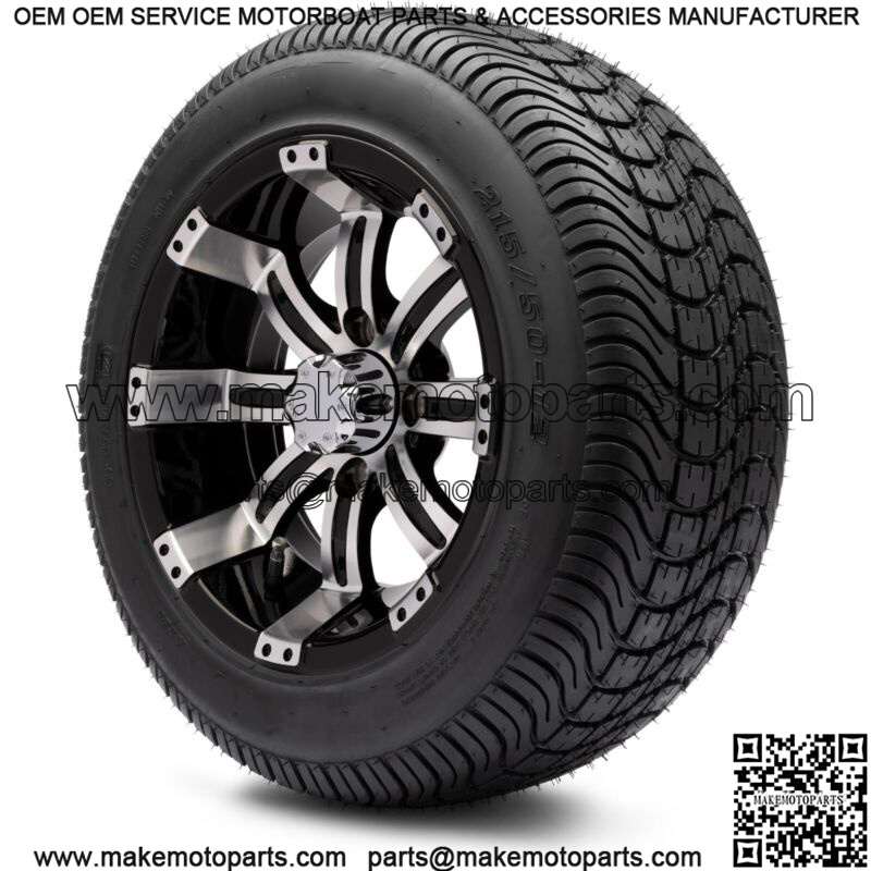 12″ Machined and Black Golf Cart Wheels and Tires (215-50-12) – Set of 4