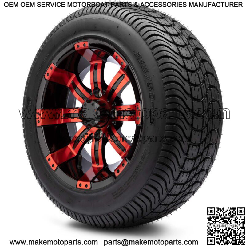 12″ Red and Black Golf Cart Wheels and Tires (215-50-12) – Set of 4