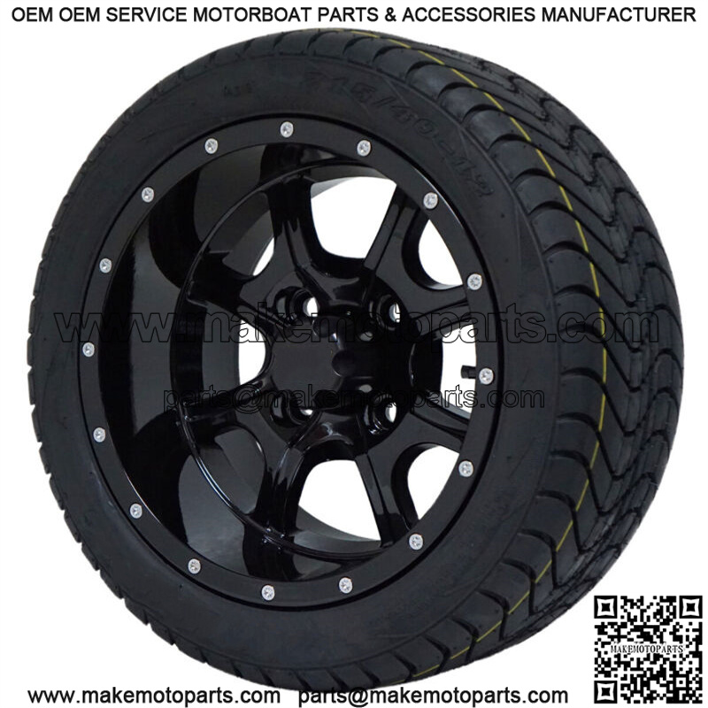 Steeleng Stalker Golf Cart 12″ Gloss Black Wheel and Tire Combo Set