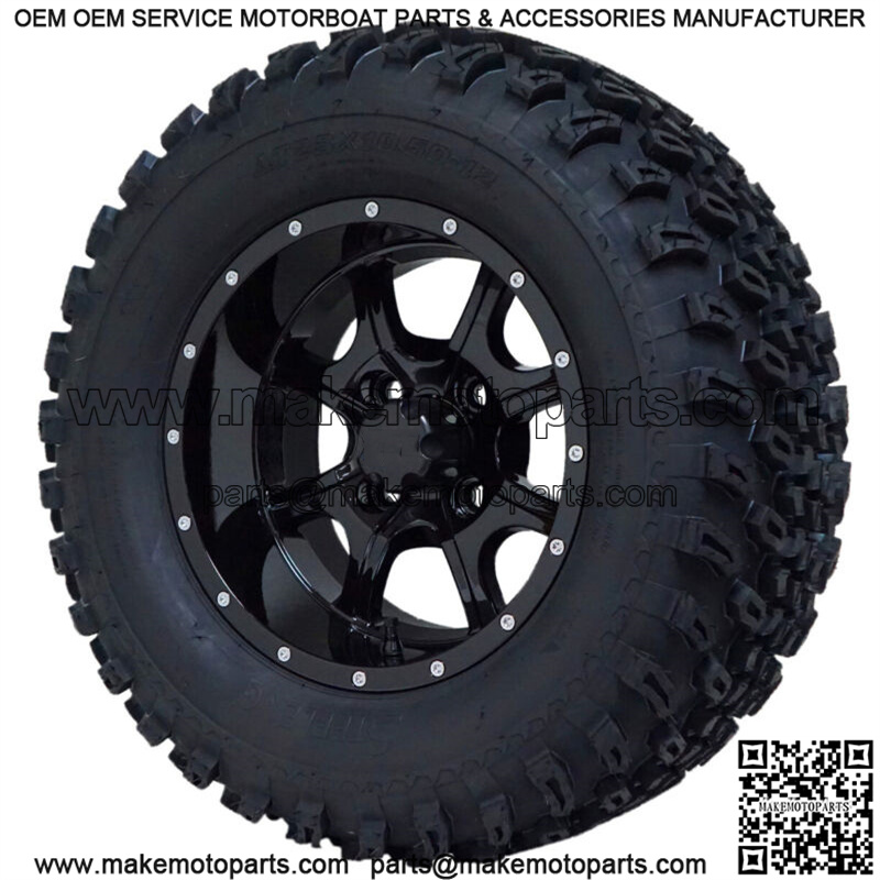 Steeleng Stalker Golf Cart 12″ Gloss Black Lifted Wheel and Tire Combo Set