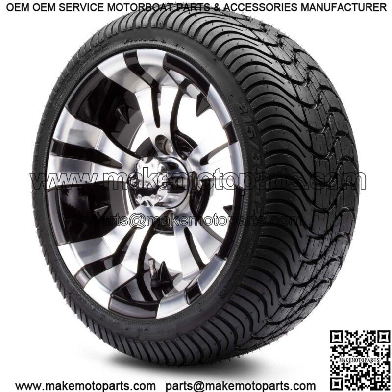12″ Vampire Machined & Black Golf Cart Wheels and Tires (215-35-12) Set of 4