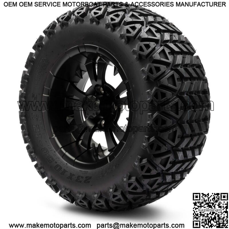 12″ Vampire Matte Black Golf Cart Wheels and Tires (23×10.50-12) Set of 4