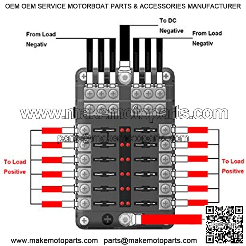 12 Way Fuse Block with Ground Boat Truck RV Camper Solar Car Automotive Fuse Box 12 Volt – 32 VolDistribution Block Red LED Indicator