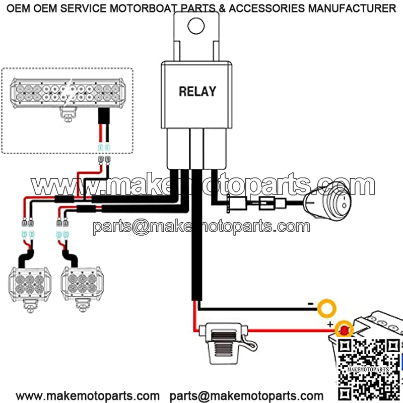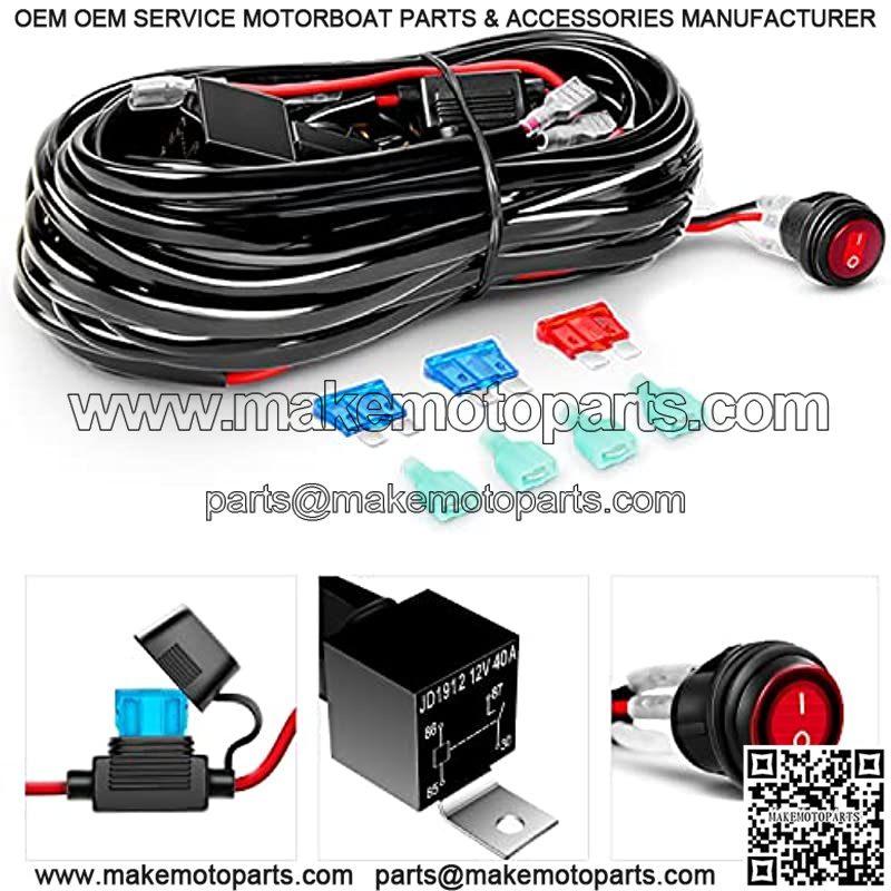 HEAVY DUTY WIRING HARNESS: The wiring harness contains an on /off switch, relay and fuses, with 2 Sets of light output connectors for dual lighting fixtures less than 180W