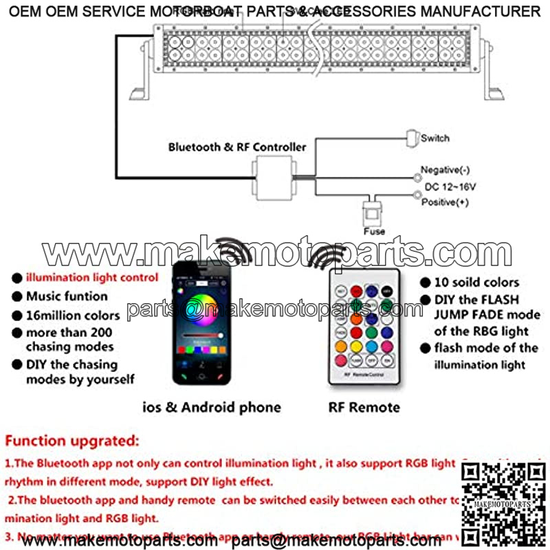 All of RGB color changing Led light bars were assembled with high quality 5050 RGB Halo strip and light bar housing ; Perfect for combination of spot beam and flood beam.