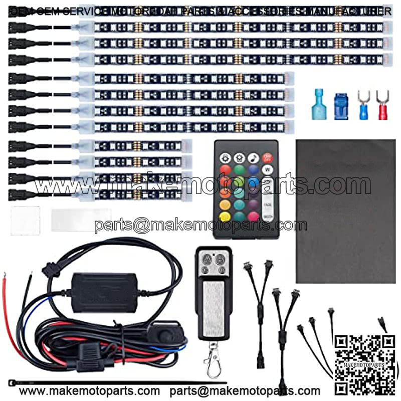 12pcs Underglow RGB LED Strip Light Kit DC 12V with 2 Red Blinking Brake Light Styles for Motorcycles Trikes Golf Carts ATVs UTVs ?C M12r
