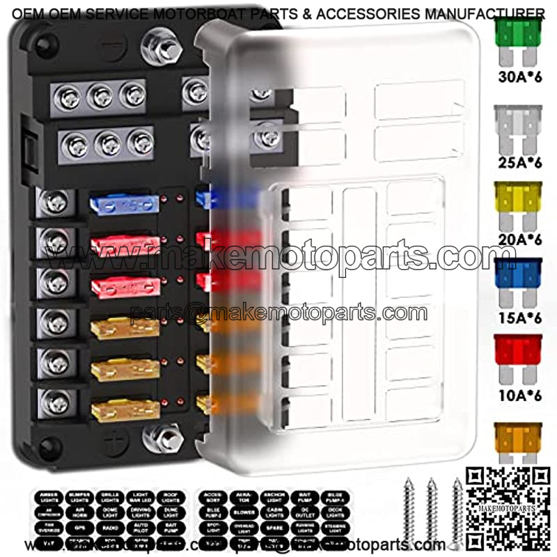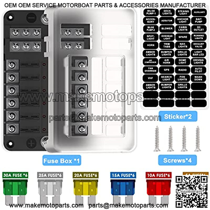12-Way Fuse Box AutomotiveAutomotive Fuse Box Tidy Panel Mount12v Fuse Box Convenient Labeling StickersRV Fuse Panel LED Indicator for Blown FuseThe labeling stickers are included. Very easy to identify and connect the wires. You can quickly identify which appliance is going wrong.