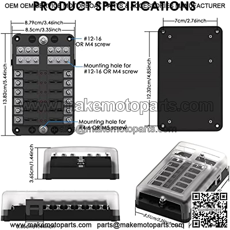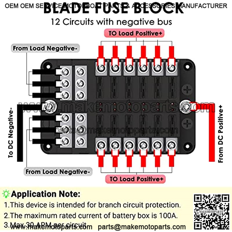 12 Way Blade Fuse Block with Negative Bus makes your circuit clear at a glance. Feel free to install or replace the fuse on each positive and negative wiring.