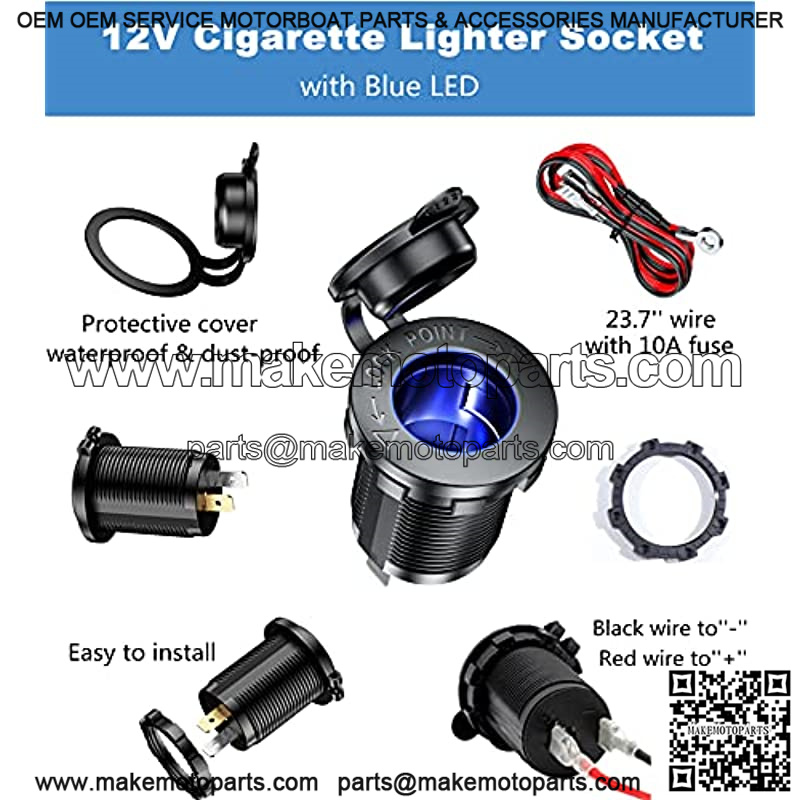 12v cigarette lighter receptacle suitable for DC 12V – 24V car, boat, marine, motorcycle, ATV, RV, truck, golf cart, etc.