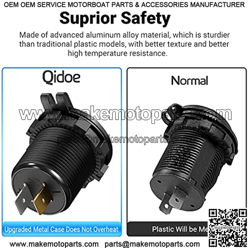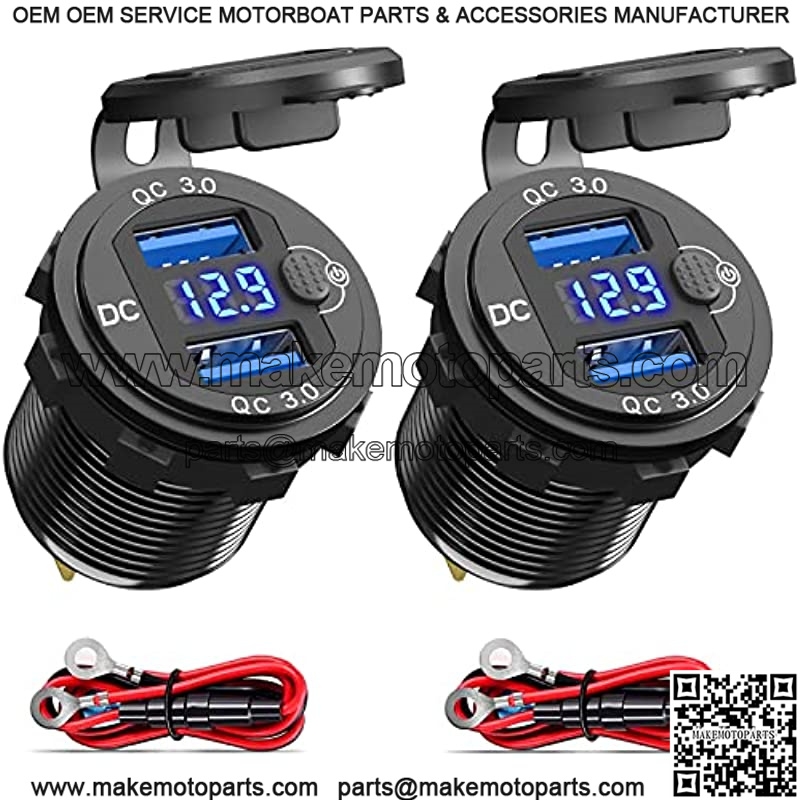 12V USB Outlet 2 Pack, Dual Quick Charge 3.0 12V Socket USB Charger with LED Voltmeter and Power Switch, Waterproof Aluminum Car Charger Adapter for RV Marine Motorcycle Truck Golf Cart RV etc.