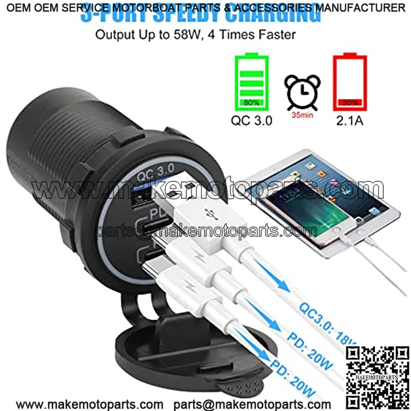 12V USB Outlet, Quick Charge 3.0 USB Charger Socket, Waterproof Power Outlet Fast Charge with 2 DP Ports & 1USB Port & Wire Fuse DIY Kit for 12V/24V Car Boat Marine Bus Truck Golf Cart RV Motorcycle