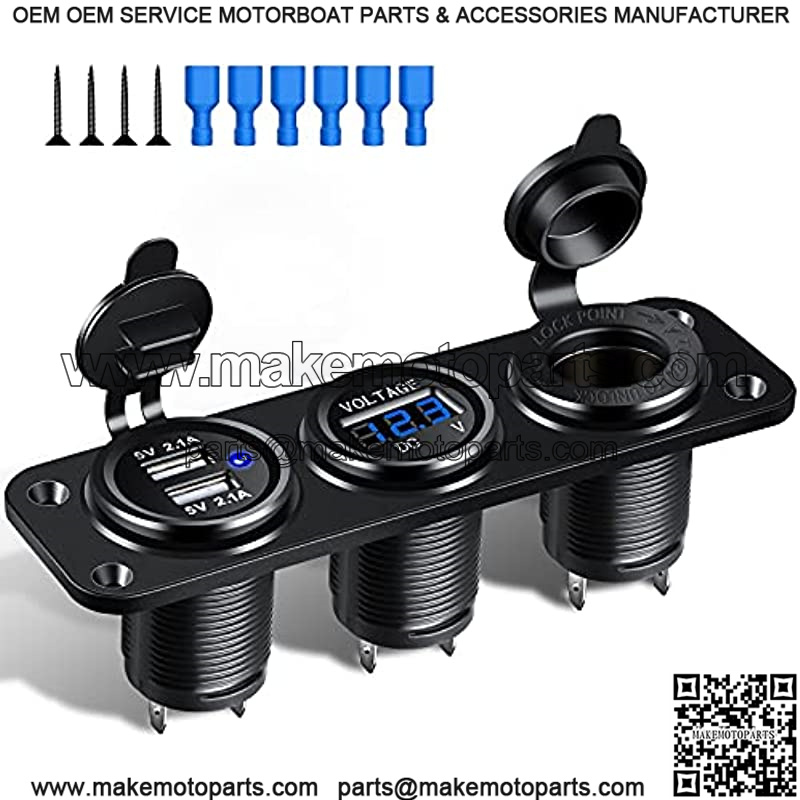 12V USB Outlet Socket Panel, Waterproof Cigarette Lighter Socket Dual USB Car Charger 2.1A & 2.1A with LED Voltmeter, 12 Volt Power Socket Adapter DIY Kit for Car Boat Marine Motorcycle RV