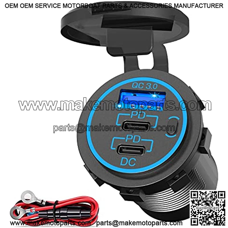 ??2022 Upgraded 58W USB-C Socket?? This 12 volt usb outlet is 1cm/0.39inch LONGER than the normal model, making it more space to be equipped with more chips, ensuring that each port can fast charge simultaneously without affecting each other. (For 12V car, total power can reach 58W; For 24V car, total power can reach 78W.)