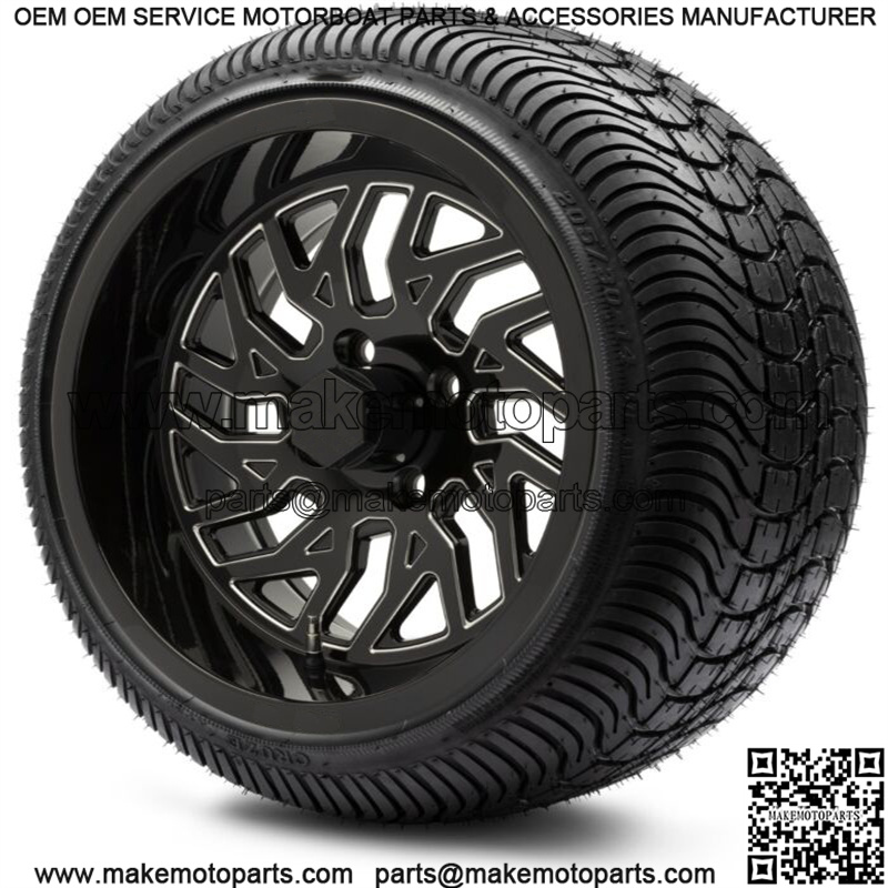 14″ Carnage Black Ball Mill Golf Cart Wheels and Tires (205-30-14) Set of 4