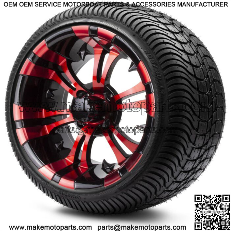 14″ Vampire Red and Black Golf Cart Wheels and Tires (205-30-14) – Set of 4