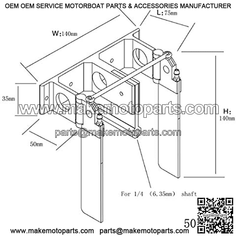 1PC Aluminum CNC 75x140x140mm Dual Water Suction Rudder Steering Rudder Strut Parts for RC 100-130CM Yacht Boat 6.35mm Shaft Boats Accessories