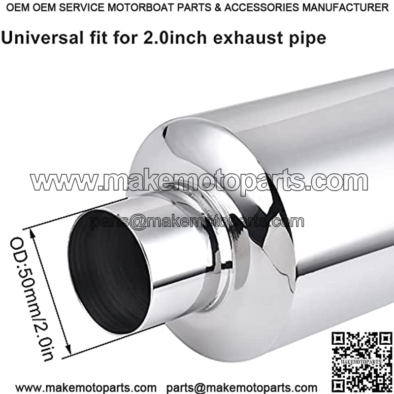 2″ Exhaust Muffler Center Stainless Steel (2.0inch Inlet/Outlet, 13.8″ Length)
