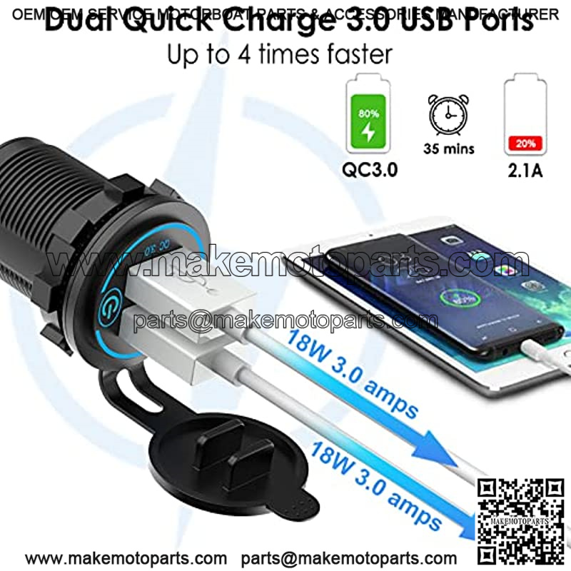 ![[2 Pack] 12V USB Outlet, Quick Charge 3.0 Dual USB Power Outlet with Touch Switch, Waterproof 12V/24V Fast Charge USB Charger Socket DIY Kit for Car Boat Marine Bus Truck Golf Cart RV Motorcycle, etc.](https://makemotoparts.com/wp-content/uploads/2025/11/LJQ.00550.jpg)
