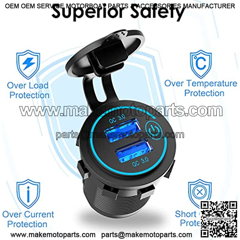![[2 Pack] 12V USB Outlet, Quick Charge 3.0 Dual USB Power Outlet with Touch Switch, Waterproof 12V/24V Fast Charge USB Charger Socket DIY Kit for Car Boat Marine Bus Truck Golf Cart RV Motorcycle, etc. - Image 2](https://makemotoparts.com/wp-content/uploads/2025/11/LJQ.005501.jpg)