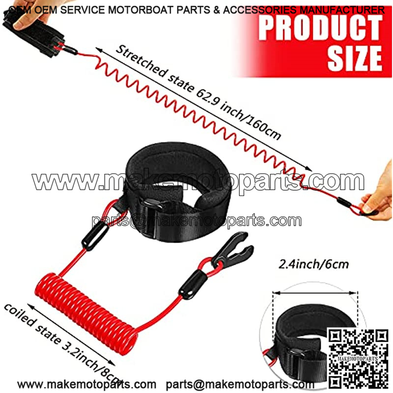 Size information: the length of the outboard engine switch lanyard in the contracted state is approx. 3.2 inches, and in the stretched state is about 62.9 inches, the rope is extendable and flexible, it can be put in a coiled state when not in use, easy to carry and store, will not take up too much space