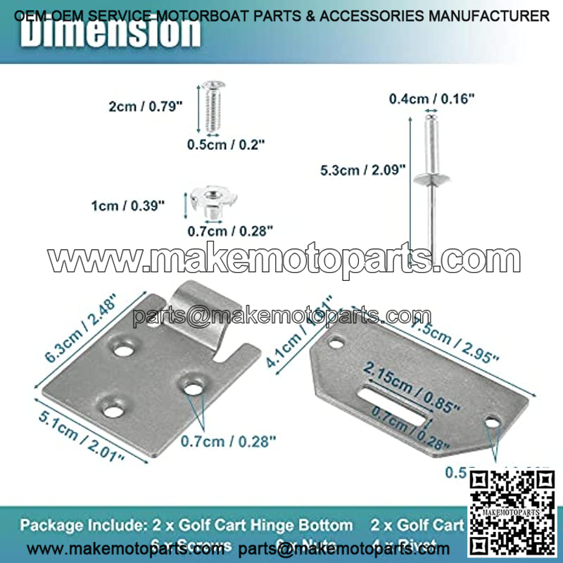 2 x Golf Cart Hinge Bottom2 x Golf Cart Hinge PlateScrews Set