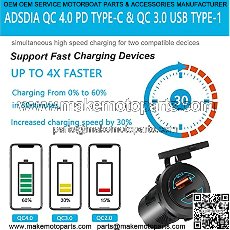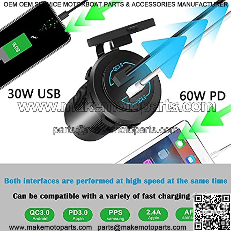 ??2022 New?? 12V USB Outlet/Outlet/Quick Charge 4.0 PD Type C/Quick Charge 3.0 USB Charger Socket/ADSDIA 12V/24V USB C Outlet/90W Waterproof Car Power Socket for Car, Boat, Motorcycle, Golf