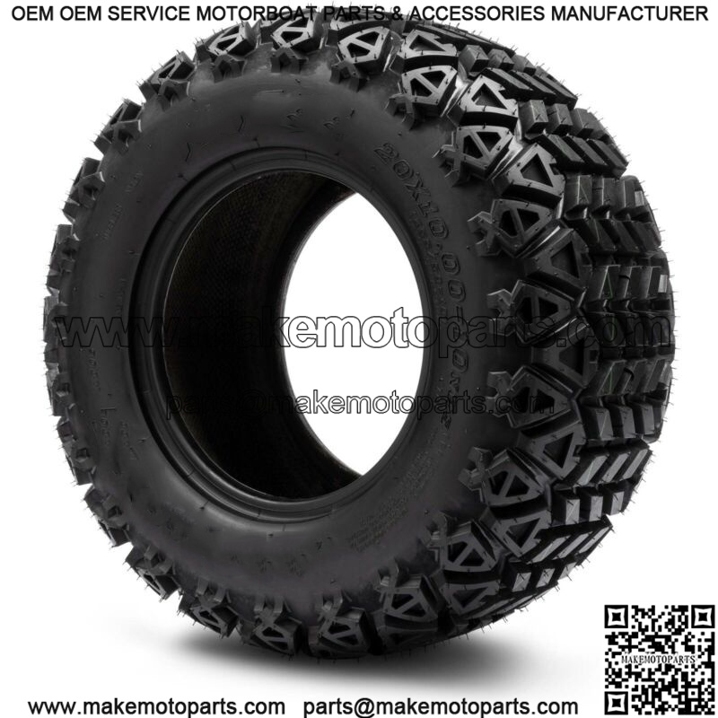 Tire is a 20/10-10 6 ply DOT “X-Trail” All-Terrain Tires. This tire will fit 10″ rims.