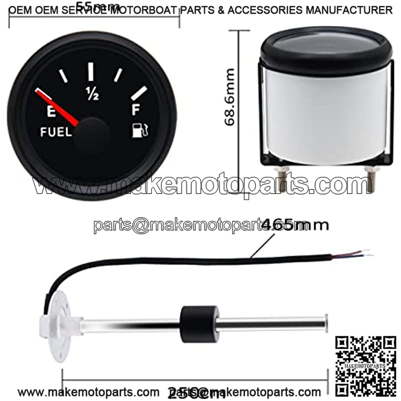 240~33ohm 250mm Marine Fuel Gas Sender Boat Water Level Gauge Sensor + 52mm Motorcycle Fuel Level Gauge Meter