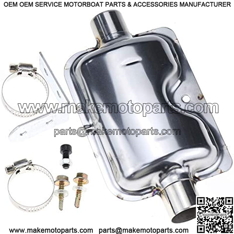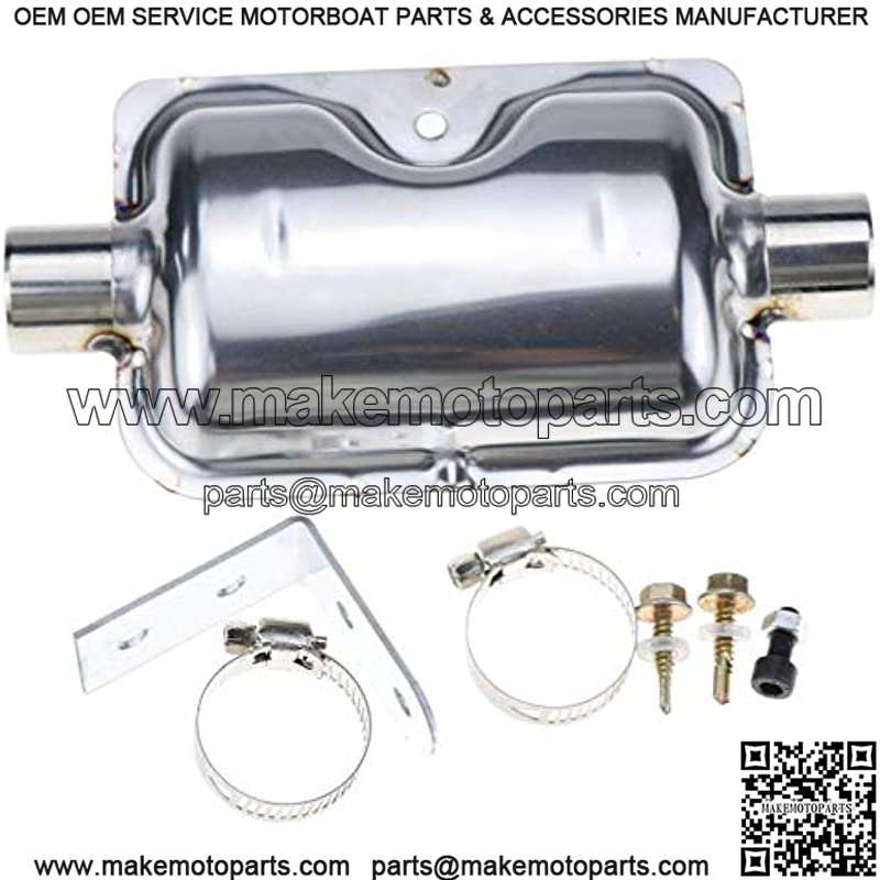 Package Includes: 1X Exhaust Muffler; 2X Clamps; 1X Mount Bracket; 3X Screws(Outer diameter is 24mm / 0.94in, Inner diameter is 18.5mm / 0.73in)