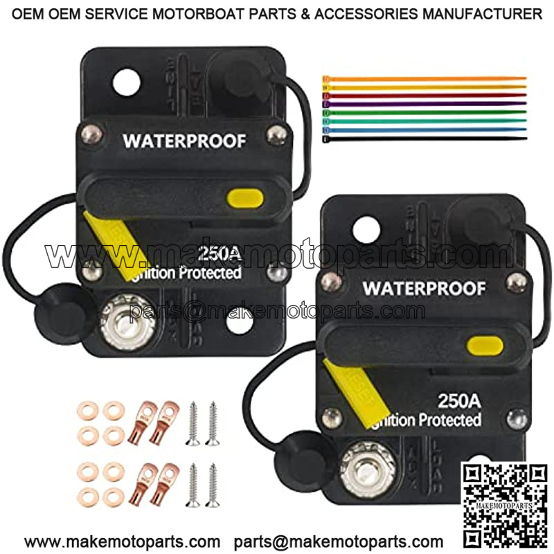 250 Amp Circuit Breaker of 2 Pack with Manual Reset Wire Terminal Copper Washer Screws and Cable Ties for Car Marine Trolling Motors Boat ATV Manual Power Protect 12V-48VDC, Waterproof