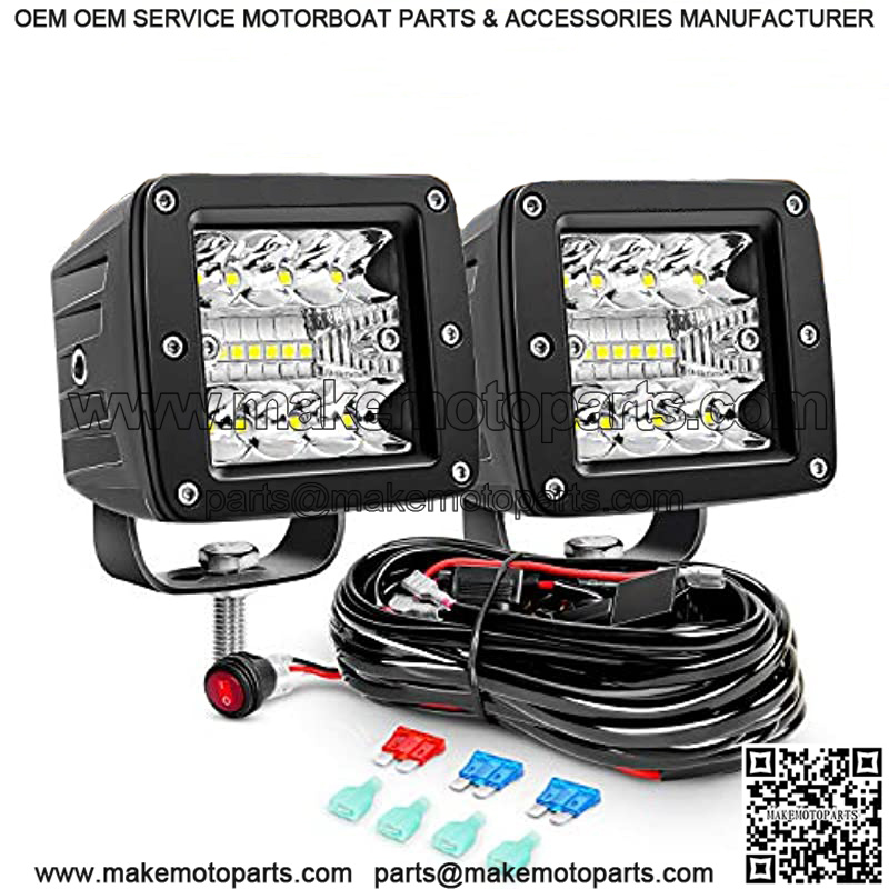 2PCS 3Inch 42W LED Pods LED Cubes Upgraded Spot Flood Combo Beam Square Driving Light Backup Light Reverse Light Grill Mount Light with Wiring Harness Kit -2 leads