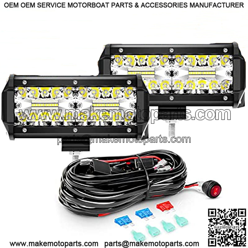 2PCS 6.5 Inch 120W Triple Row LED Pods Flood Light Bar Fog Light Driving Lighting with 16AWG Off Road Wiring Harness-2 Leads for Truck Golf Cart SUV ATV UTV Boat