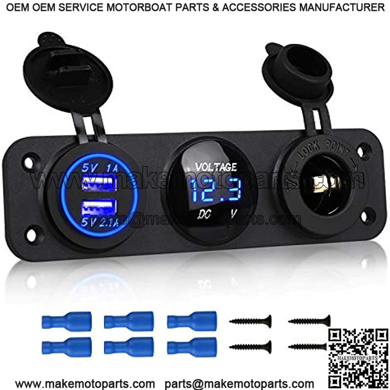 3 in 1 Charger Socket Panel, 12V Dual USB Car Socket Charger Socket Power Outlet & LED Digital Voltmeter & Cigarette Lighter Socket Splitter Adapter for Truck Car Marine Boat RV