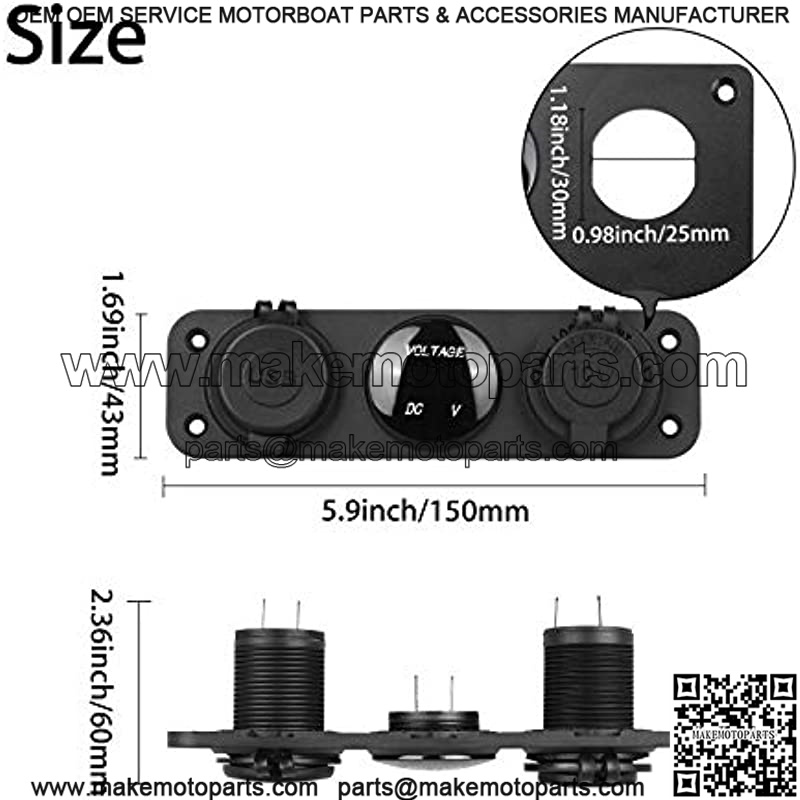 3 IN 1 CIGARETTE SOCKET PANEL: This 12v socket panel designed with 12v RV USB outlet + LED digital display voltmeter+ 12v cigarette lighter outlet. Multifunctional three-hole panel for DIY demands, detachable to replace other charger sockets or anything else that fits. Convenient to install and operate.