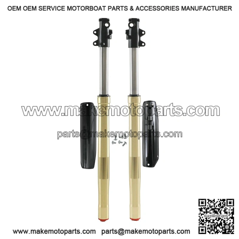 Package includes: A pair of front fork assembly with hydraulic oil + triple clamp handlebar riser set + front brake assembly + 1x axle