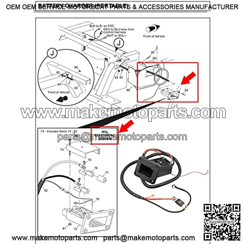 36V Powerwise Charger Plug or Charger Receptacle for EZGO TXT Medalist Electric Golf Carts 28137G02,73063-G01,