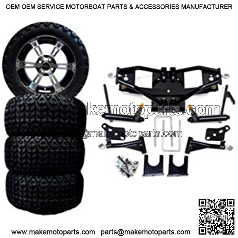 . Includes (1) Lift Kit Combo with 14″ Colossus Wheels & Tires ******** Lift Kit*** . Brand new heavy duty 6″ A-arm deluxe lift kit to replace stock suspension . Perfect lift for rough and rugged environments . Fits Club Car DS Golf Carts 2004 & up (2003 and older models will need a different lift kit- see item LK1001) . Installation instructions and all necessary mounting hardware included. ******** Wheel &Tires*** . Includes (4) wheels and (4) tires . 23×10-14 All Terrain Tires come mounted on Colossus Wheels w/ center caps (might have to remove hub dust covers to allow room for center caps) . Set includes (16) Lug Nuts compatible with Club Car Golf Carts ***PLEASE NOTE: WHEELS/TIRES IN PHOTO MAY NOT BE THE ACTUAL SIZE OF WHEELS/TIRES IN THIS COMBO*** . It is important that you know the year, make and model of your golf cart before purchasing this lift kit. Also knowing the tire size that your golf cart wheel well can hold is equally important** . Spacers or lift block may also be needed and are available at an additional cost. They are NOT included** . Professional Installation is highly recommended. We do NOT offer technical support**