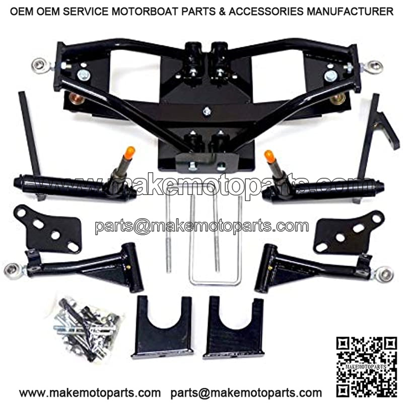 . Includes (1) 6″ A-Arm Lift Kit . Fits on Club Car DS Golf Carts 2004 & up. (2003 and older models will need older kit – see item LK1001)** . Fits gas and electric models . Perfect lift for rough and rugged environments . Increased suspension travel for rough terrain . Allows camber and toe front end alignment . Durable urethane bushings . Grease fittings for easy maintenance . Durable high gloss powder coat finish . Allows clearance for up to 23″ tall tires . Installation instructions and all necessary mounting hardware included . The extreme duty design is ideal for all-terrain activities and will display that off-road style you desire . This lift kit replaces the entire front end for smooth independent suspension . Does NOT fit Club Car Precedent Golf Carts** . It is important that you know the year, make and model of your golf cart before purchasing this lift kit** . Will NOT fit Club Car DS older models. (1982-2003) ** . Professional Installation is highly recommended. We do NOT offer technical support**