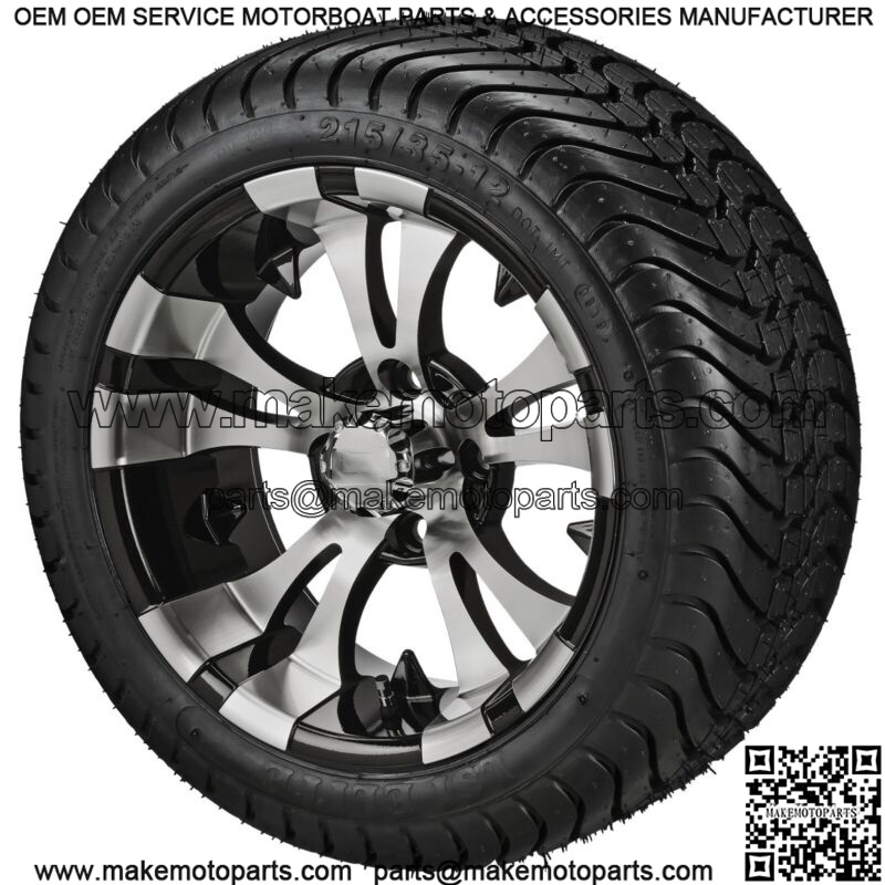 4 Golf Cart 215/35-12 LSI Elite Tires on 12×7 Black/Machined Vampire Wheels