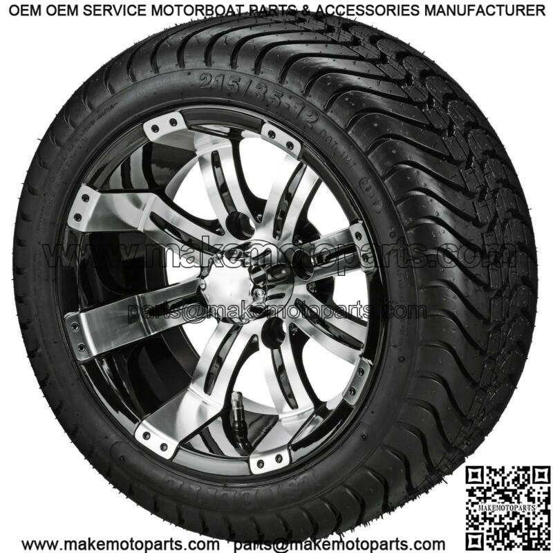 4 Golf Cart 215/35-12 Radial Tires on 12×7 Black/Machined Wheels