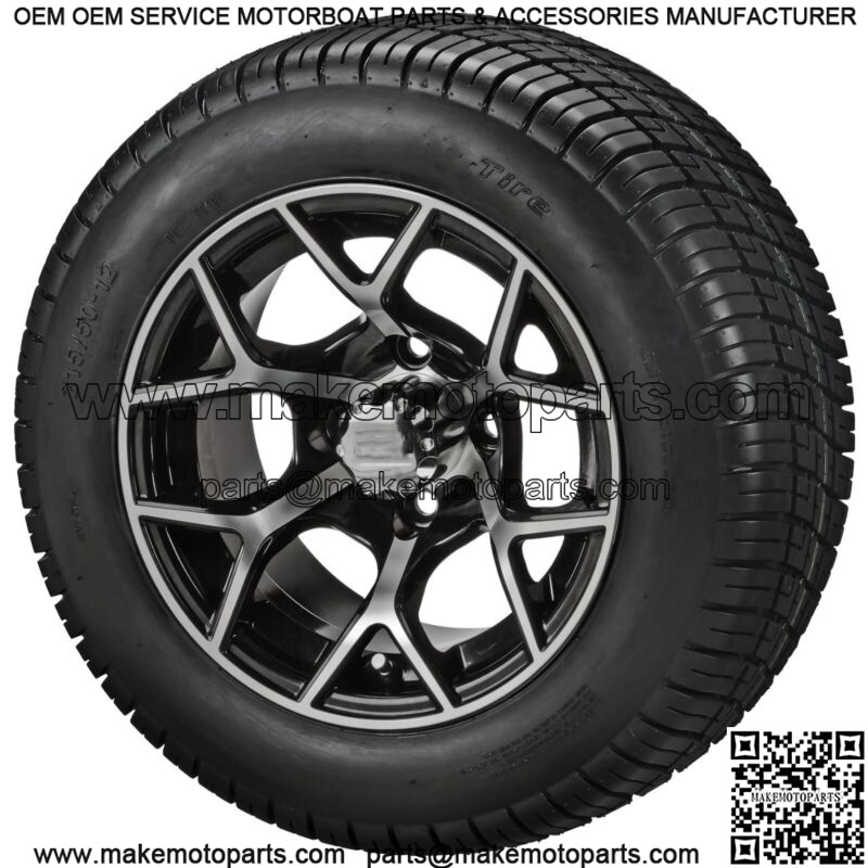 4 Golf Cart 215/50-12 Tires on 12×7 Black/Machined Ninja Wheels
