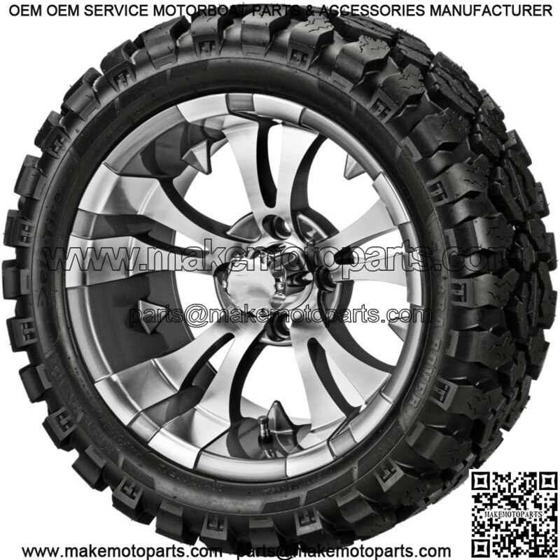 4 Golf Cart 23×10-14 Sierra Rover Radial Tires on 14×7 Gunmetal Vampire Wheels